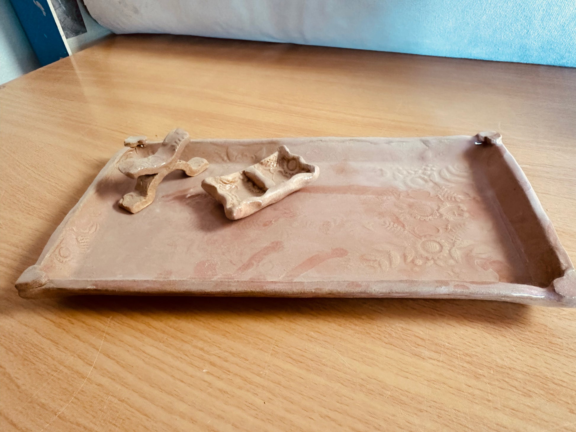 You will decorate the surfaces of you piece with textures, stamps, and carving. After you are finished with your creation, we will fire your piece, glaze it with a glaze that you choose, and it will be available for pick up in 4-5 weeks. All clay, glaze, tools, and firings are included.